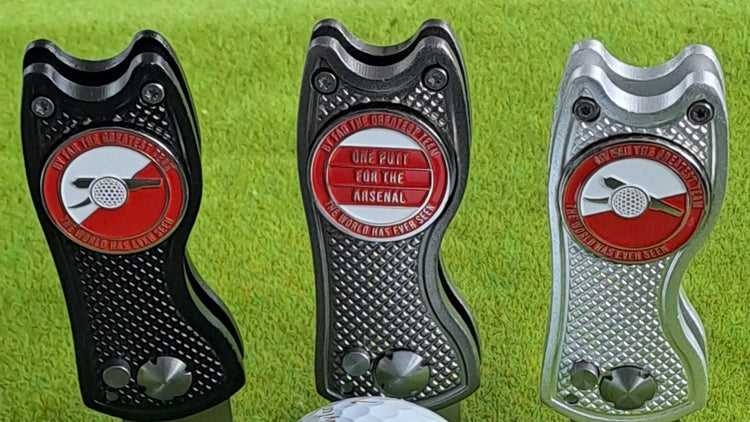 Looking for an ideal golf gift for an Arsenal fan who plays golf? Or one for yourself? We sell Arsenal golf ball markers, with accessories like pitch mark repair tools and cap clips. Ball markers start from just £5.99 with free standard delivery on all orders.