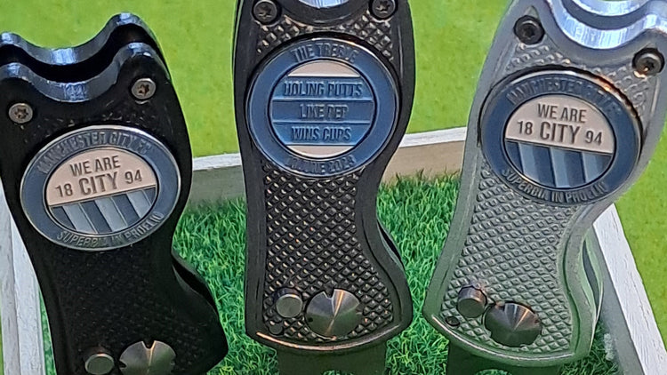 Looking for an ideal golf gift for the Manchester City fan who plays golf? Or one for yourself? We sell City golf ball markers, with accessories like pitch mark repair tools and cap clips. Ball markers start from just £5.99 with free standard delivery on all orders.